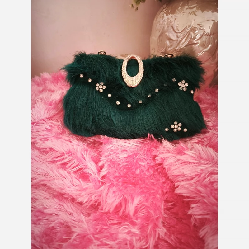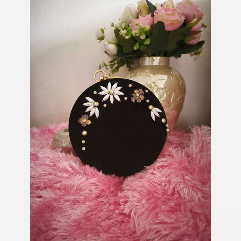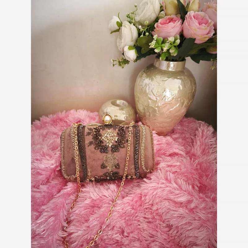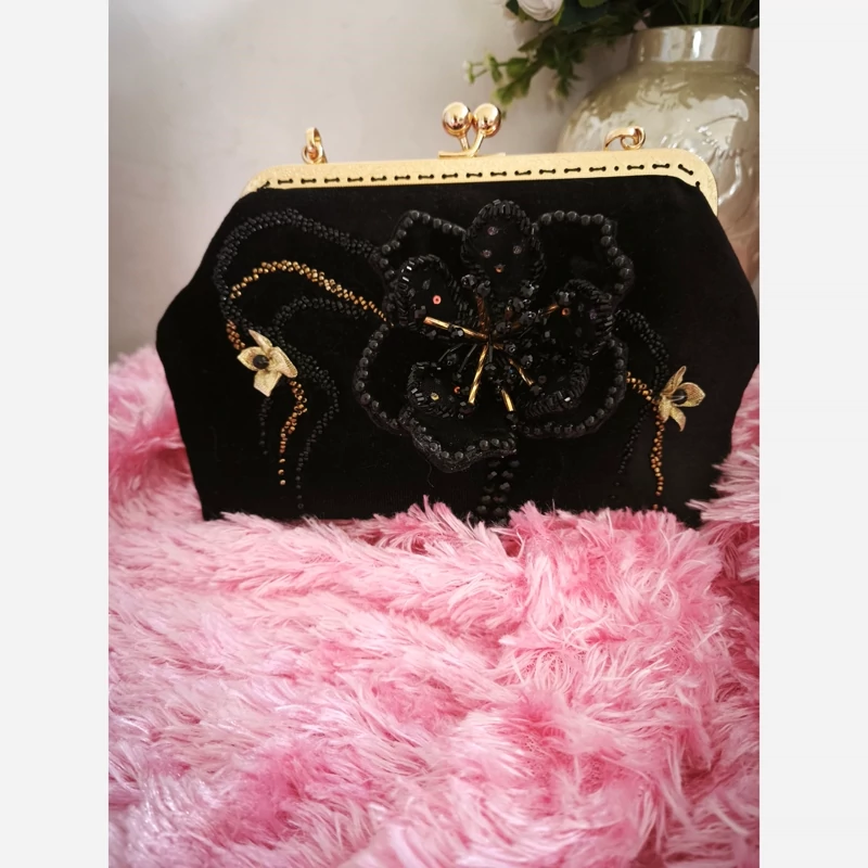 کیف دست دوز مخمل منجوق دوزی با زنجیر دوشی کوتاه