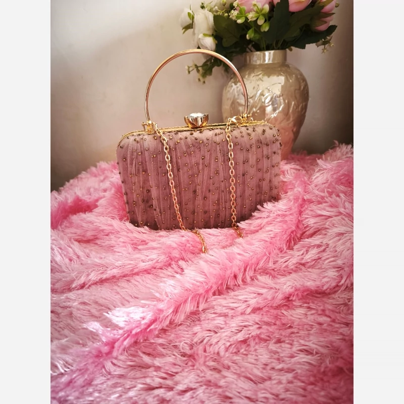 دست ساز و منحصر به فرد هست و دیگه از این کیف شارژ نخواهد شد با تور پفکی و مخمل کار شده دارای زنجیر دوشی کوتاه و دسته طلای که رنگشون ثابت است