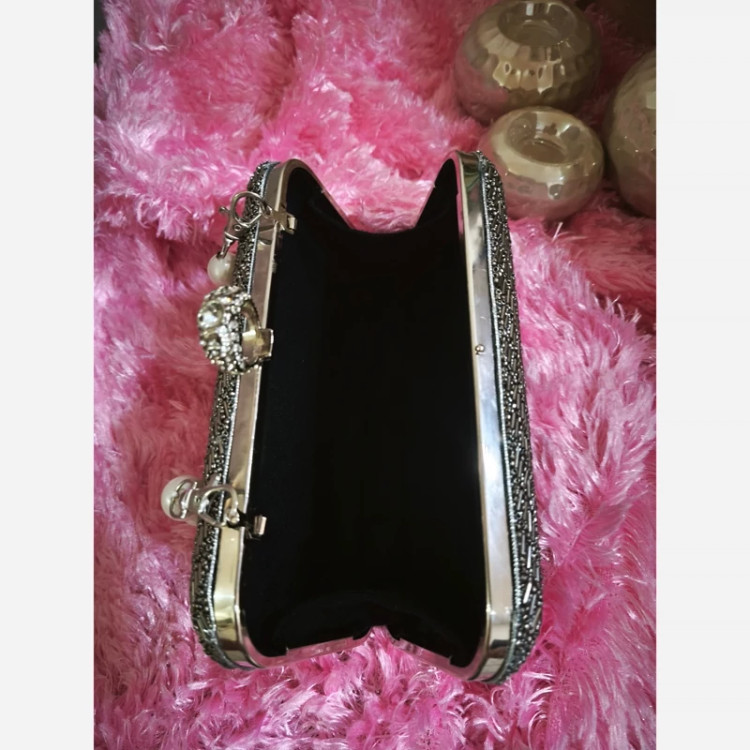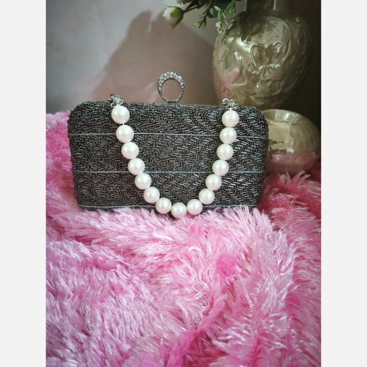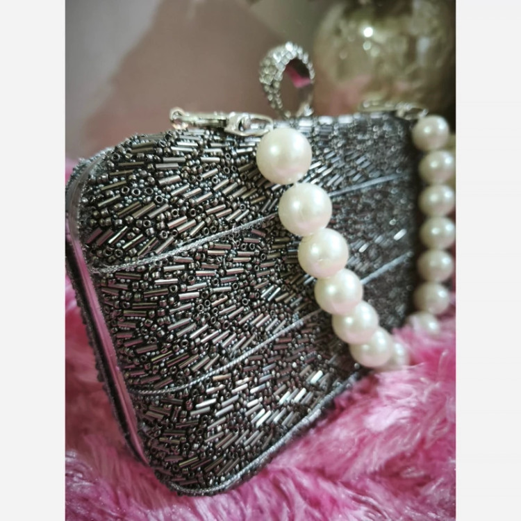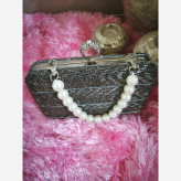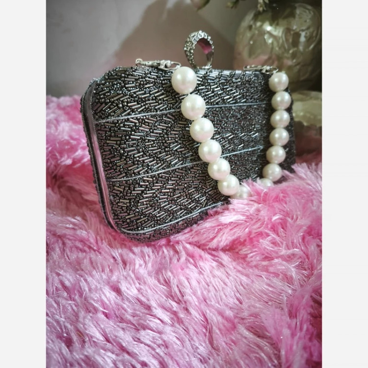 کیف زنانه مجلسی دستساز کیف دستی کیف منجوق دار رنگ نقره ای کیف زنانه