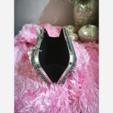کیف دستساز کار شده با ملیله و منجوق رنگ نقره ای مناسب مهمانی و مجالس دارای بند مرواریدی رنگ یراق طلایی و ثابت هست ابعاد طول 20 عرض 5 ارتفاع 11 عکس ها بدون فیلتر و فتوشاپ هستن