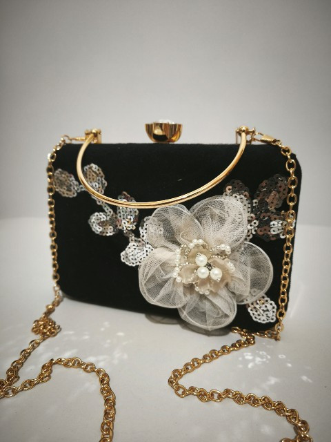 کیف دست ساز جنس پارچه کار شده مخمل مشکی جاسمین هستش داخل کیف پارچه آستری اشبالت به کار رفته مناسب مجالس و مهمانی ها رویه کار گل برجسته رنگ شیری توری هست که با پولک تزیین شده: 1