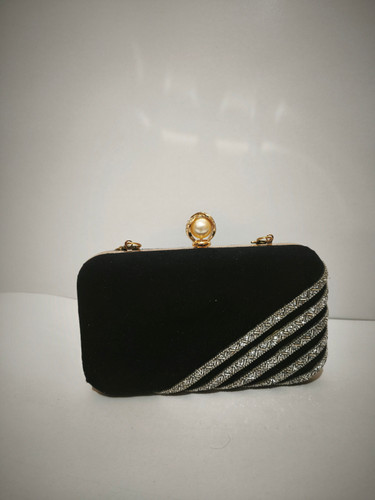 کیف زنانه مجلسی کیف دست ساز کیف پارچه ی مشکی کیف مخمل