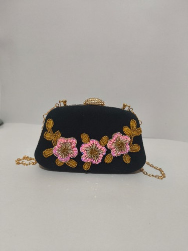 کیفمجلسی زنانه دستساز قابدار با منجوق زغالی و ملیله زغالی هفت رنگ